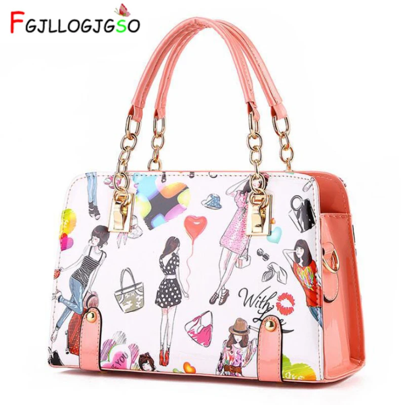 معلومات اضافية FGJLLOGJGSO العلامة التجارية الإناث لينة قذيفة حقيبة كتف مفردة جديد النساء المطبوعة حقيبة يد فاخرة حريمي السيدات المعادن سلسلة crossbody أكياس