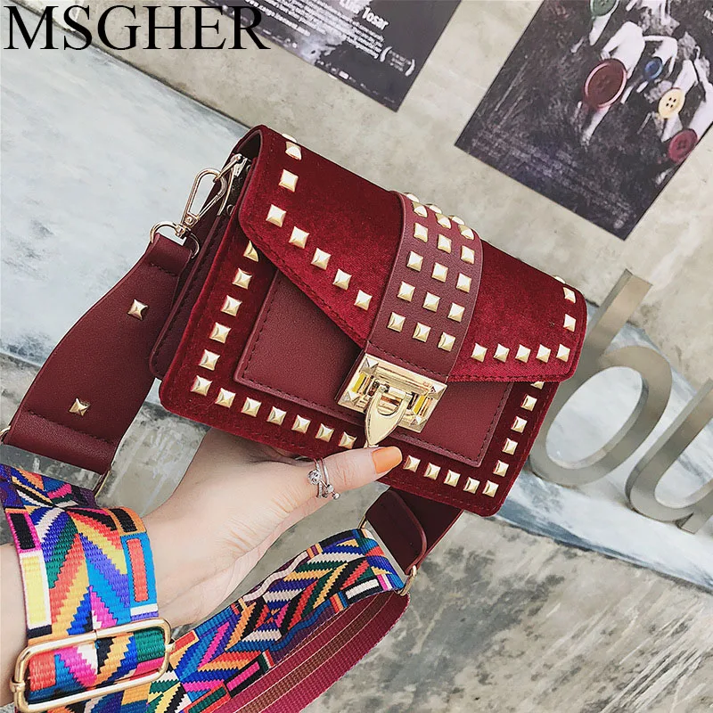 وانت porشراء Crossbody Bags, MSGHER الخريف جديد برشام الأزياء حقيبة كتف صغيرة مربع أكياس عالية الجودة حقيبة ساعي أكياس Crossbody للنساء 2018 WB1075 أرغب في شراء